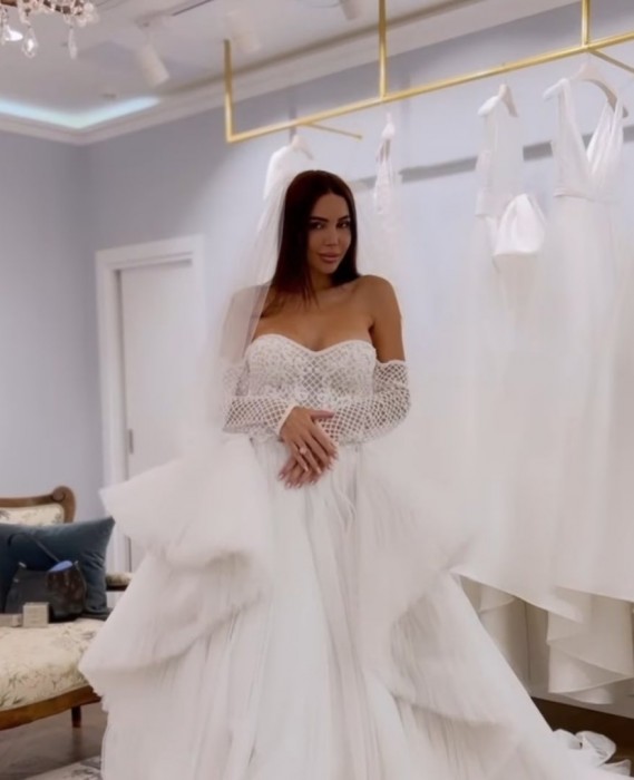 Знаменитая чета решила повторить столь прекрасное торжество, чтобы еще раз испытать незабываемые эмоции. Блогерша опубликовала несколько снимков, на которых она запечатлена в нескольких нарядах, средний ценник которых, примерно, 600-900 тысяч рублей. Интересно, что большинству ее поклонников не понравился ни один из вариантов, и многие считают, что платья не выглядят на такую цену.