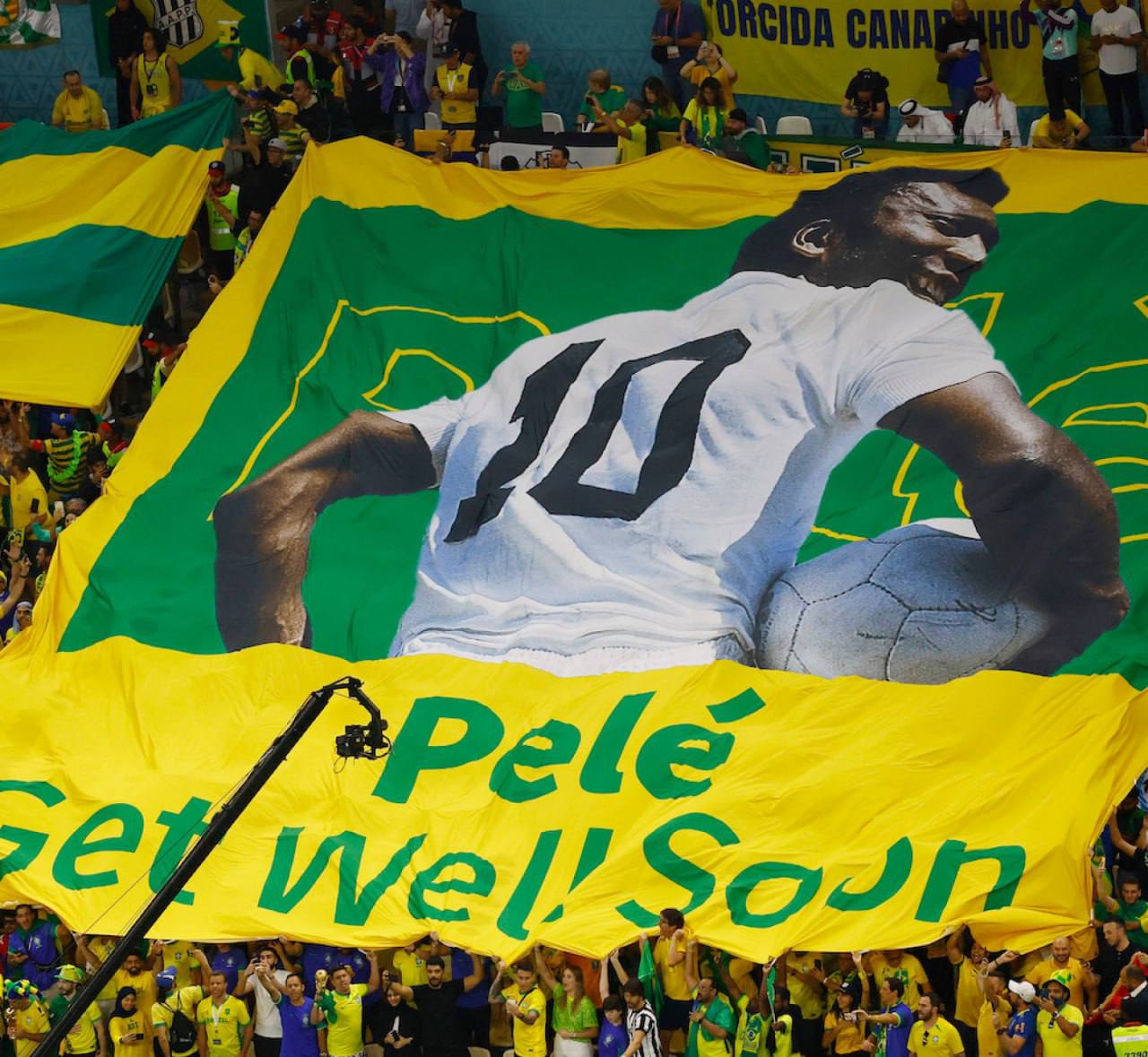 Есть даже сообщения о том, что Пеле в больнице сейчас пытаются больше облегчить страдания, но точных данных пока нет. Сам Пеле сообщал, что в больницу он ляжет с плановым визитом. А тем временем в Катаре вывесили огромный баннер с пожеланиями здоровья Пеле, и его портрет даже появился на иллюминации одного из небоскребов.