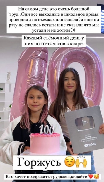 Самойлова рассказала, что на самом деле достичь таких результатов девочки смогли вовсе не из-за звездной мамы. Девочки все свои выходные в школьное время проводили на съемках и развивали канал. Они могли быть задействованы в съемках по 10-12 часов в сутки, и никто из них не плакал, что им тяжело и они устали.