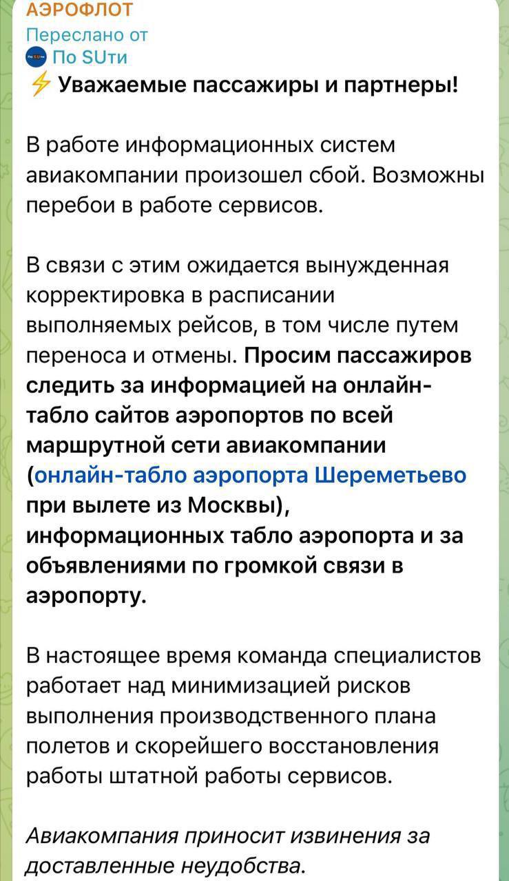 В результате инцидента «Аэрофлот» начал массово отменять и переносить рейсы в нескольких регионах, объясняя это «сбоем информационных систем». Пассажиры сталкиваются с большими неудобствами, и многие из них остаются в неведении относительно своих рейсов. Ожидается, что авиакомпания предоставит более подробную информацию о ситуации и планах по восстановлению работы систем.