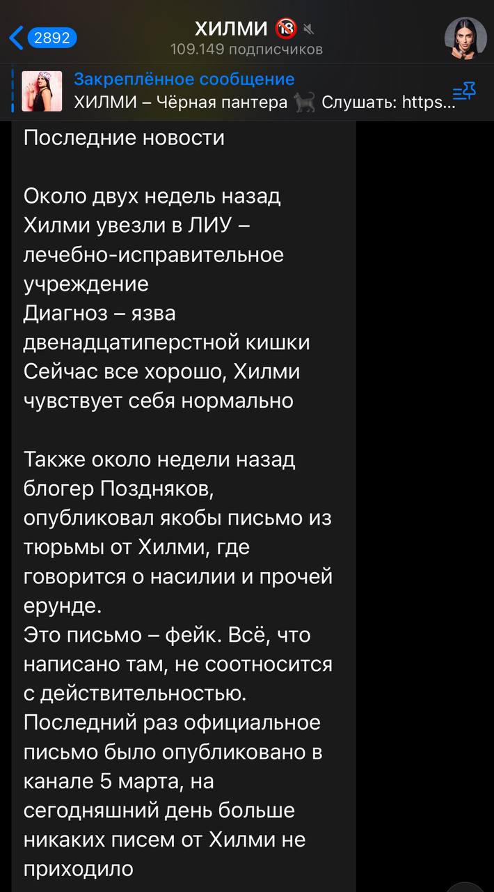Хилми оказался в лечебно-исправительном учреждении, где ему пришлось пройти серьезное лечение. Причиной госпитализации стала язва двенадцатиперстной кишки, которая потребовала медицинского вмешательства специалистов тюремной больницы. Несмотря на непростые условия пребывания, врачи смогли оказать необходимую помощь, и сейчас состояние здоровья блогера стабилизировалось.(информация с его тг канала)