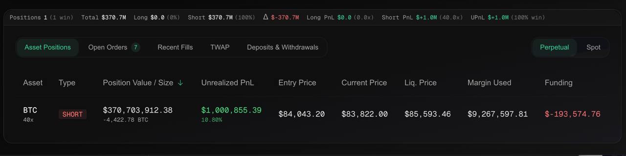 В последние дни внимание крипто-сообщества привлек один крупный игрок, который открыл шорт по биткойну с плечом 40x на сумму 10 миллионов долларов. Эта позиция стала настолько заметной, что о ней активно обсуждают даже в русскоязычных крипто-каналах Telegram.