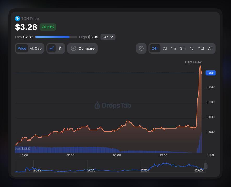 TON взлетел на 20% после выезда Дурова из Франции.