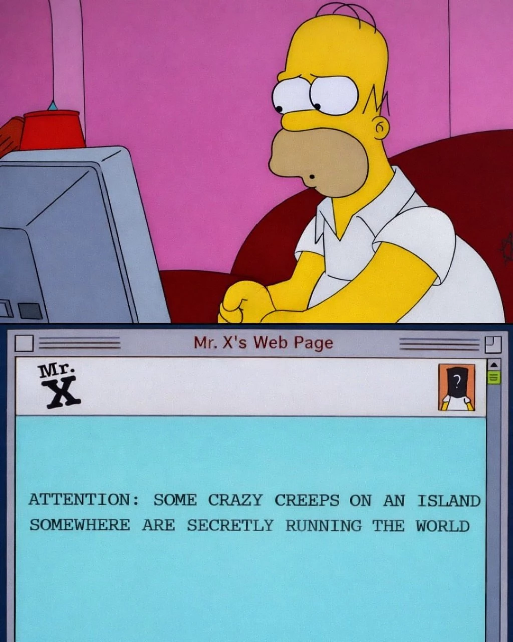 В 2000 году в серии «Симпсонов» про анонимный сайт сплетен мелькает строка: «Какие-то сумасшедшие уроды где-то на острове тайно правят миром». Фанаты сразу связали это с делом Джеффри Эпштейна — миллиардера, который устраивал оргии с несовершеннолетними на своём частном острове, куда слетались богатые и влиятельные. Люди в сети кипят от ярости и удивления: как мультик мог «предсказать» такую мерзость? Многие кричат, что шоу знает слишком много тайн элиты, и это не совпадение.