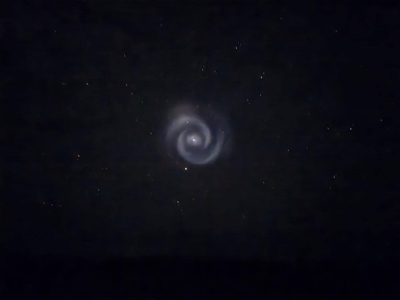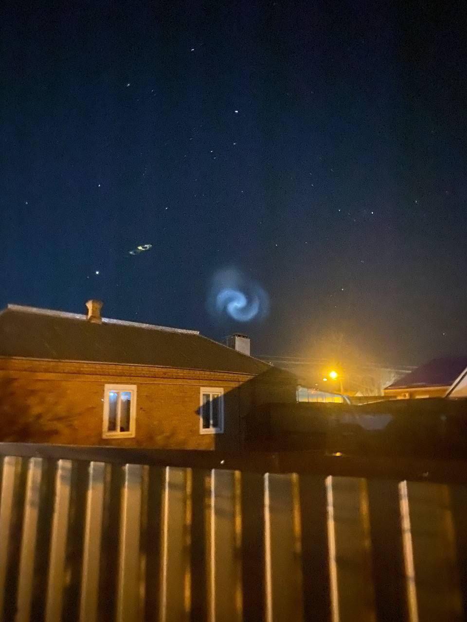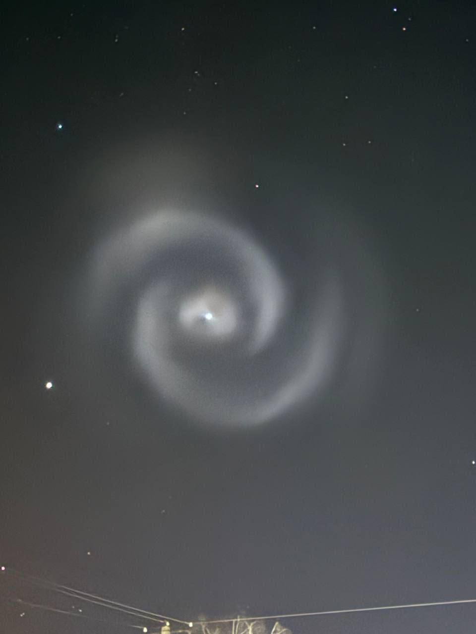По предварительным данным, этот эффект был вызван ракетой Falcon 9 от американской компании SpaceX, которая успешно вывела на околоземную орбиту спутник NROL-69. Спиральный след, скорее всего, возник после сброса верхней ступени ракеты, которая начала вращаться и выбрасывать остатки топлива, создавая этот впечатляющий визуальный эффект.
