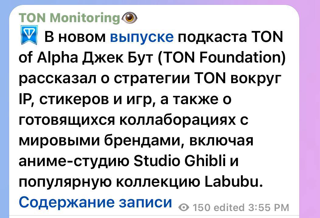Ton Foundation анонсировал масштабные коллаборации с мировыми брендами, включая партнёрства с популярной компанией Labubu и легендарной анимационной студией Studio Ghibli — в рамках сотрудничества в Telegram появятся специальные подарки от этих брендов. Цель подобных партнёрств — привлечь международное сообщество к экосистеме TON и развитию NFT-технологий в мессенджере, сделав их более доступными и интересными для широкой аудитории.